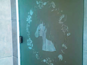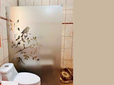 Empavonado baño shower door, diseño pajaritos. Diseño e Instalación interior aplicación de calor. Código Cb-68