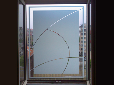 Diseño e Instalación interior ventana dormitorio, vinilo a dos colores. Código Cb-35.